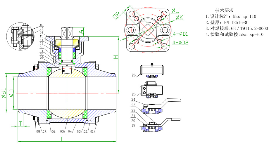 1.ISO 5211平台连接,2、阀杆防飞出设计,3、防静电装置,4、上密封可调功能,5、壳体脱蜡精密铸造